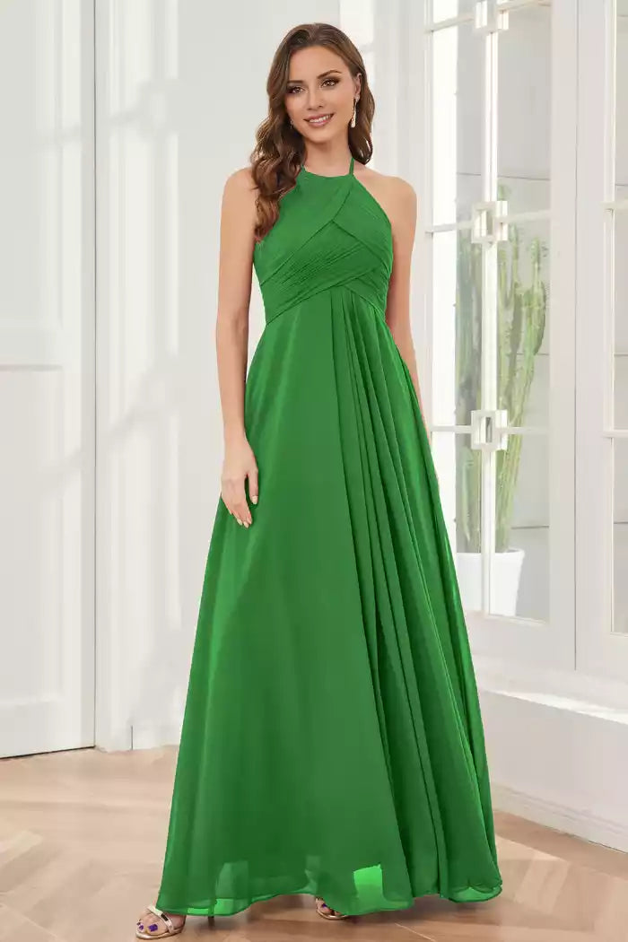 A-line Floor-length Halter Chiffon Bridesmaid Dresses