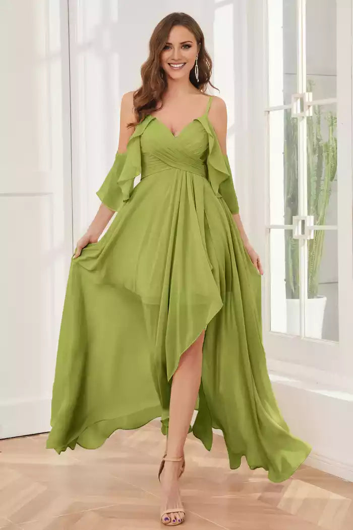 Asymmetrical Off the Shoulder Ruffles Chiffon Bridesmaid Dresses