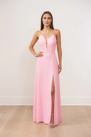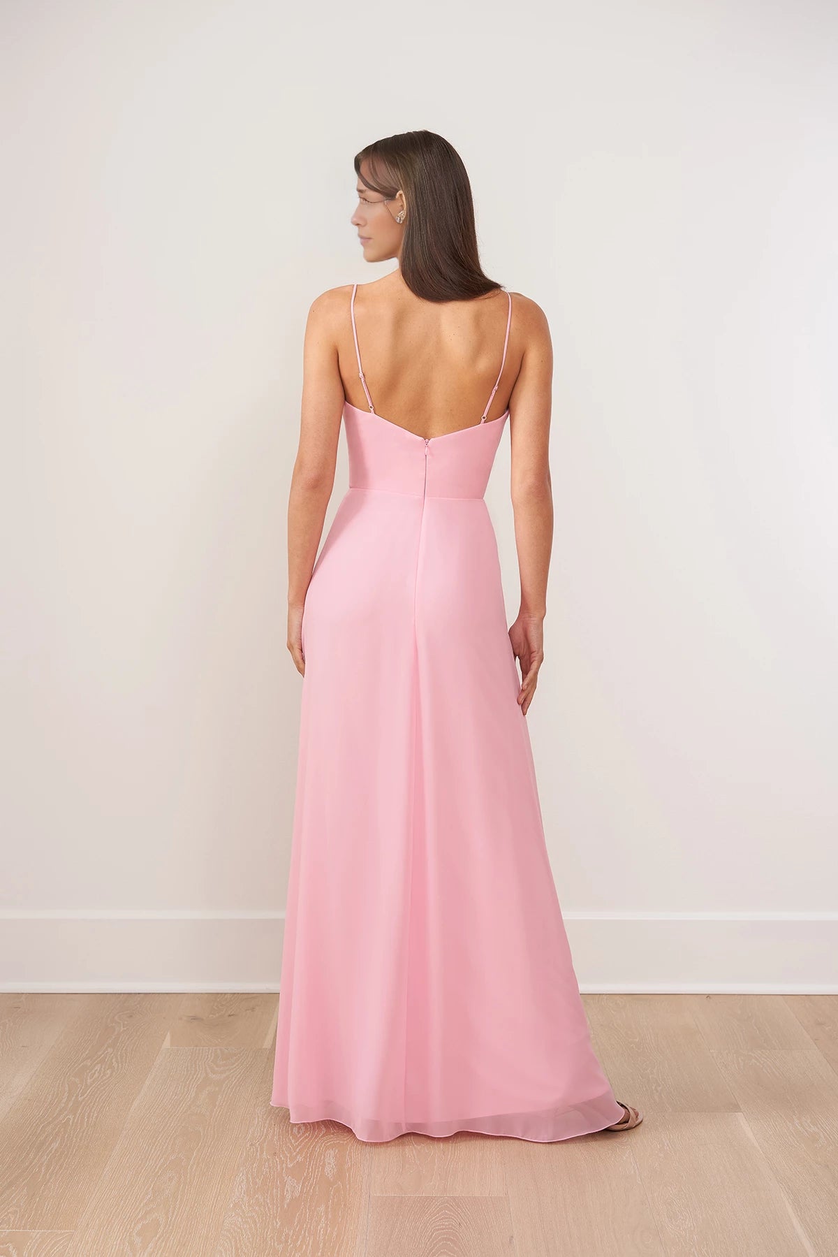 Chiffon A-line Gown with Plunging V-Notch Sculptured Bodice and V-Neckline Back Bridesmaid Dresses - US 2 / UK 6 / EU 32