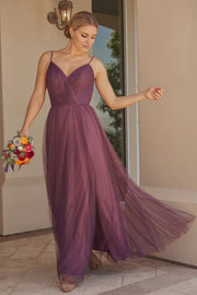 Classic A-Line V Neck Spaghetti Straps Lace Up Back Floor-Length Bridesmaid Dress