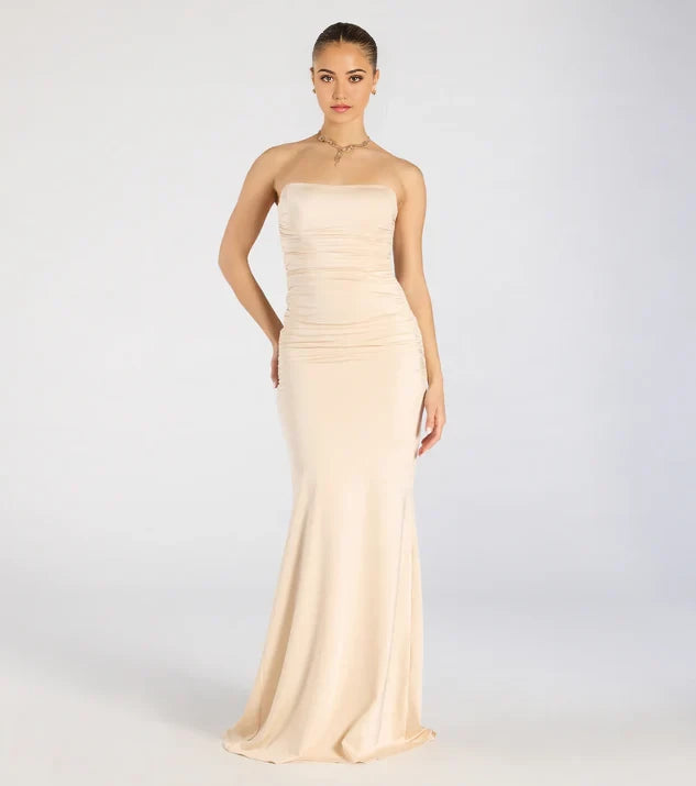 Classic Mermaid Strapless Sleeveless Crisscross Back Floor-Length Bridesmaid Dress - GOLD / US 2 / UK 6 / EU 32