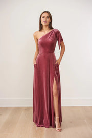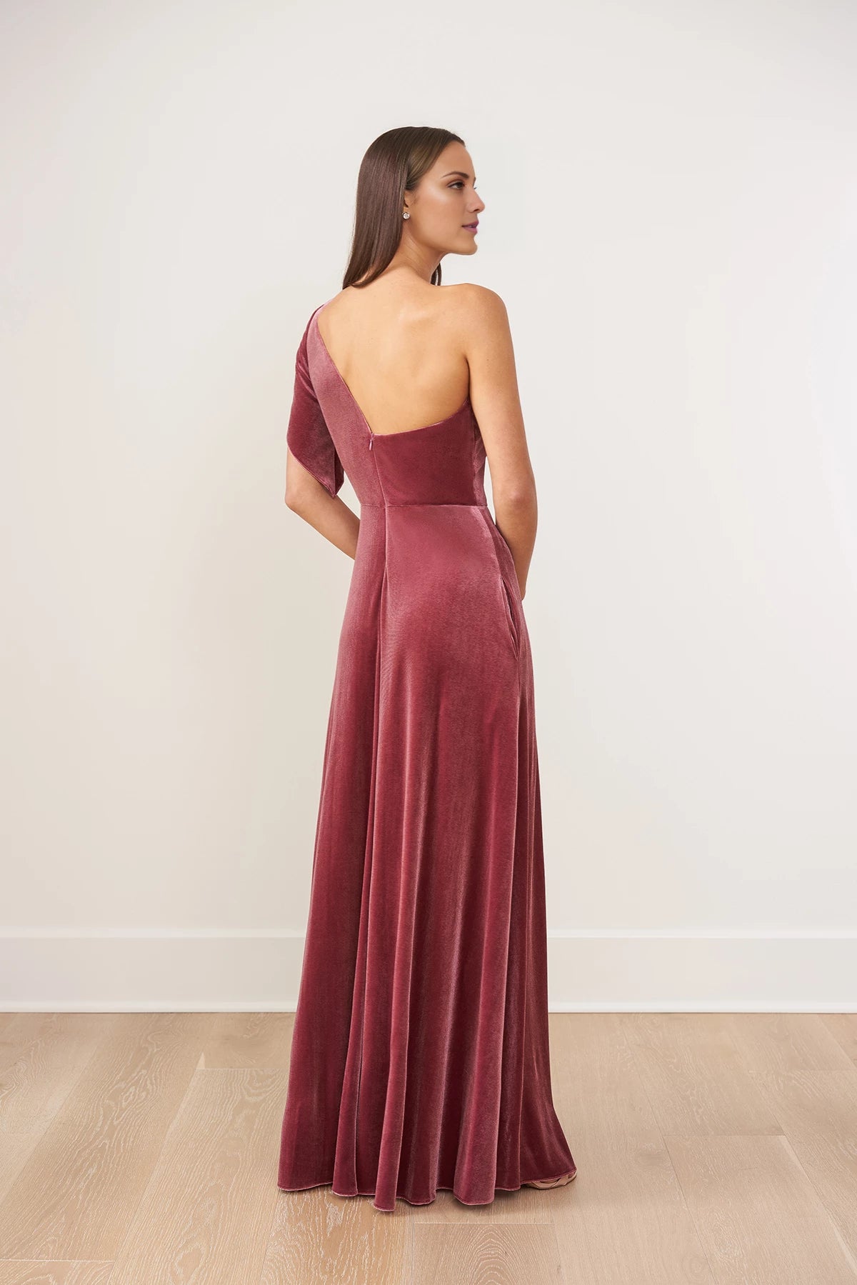 Enchanting Velvet Fit and Flare Gown with One Shoulder Look and Angular Short Sleeve Bridesmaid Dresses - US 2 / UK 6 / EU 32