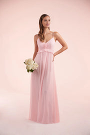 Fashion A-Line V Neck Sleeveless Back Zip Floor-Length Bridesmaid Dress