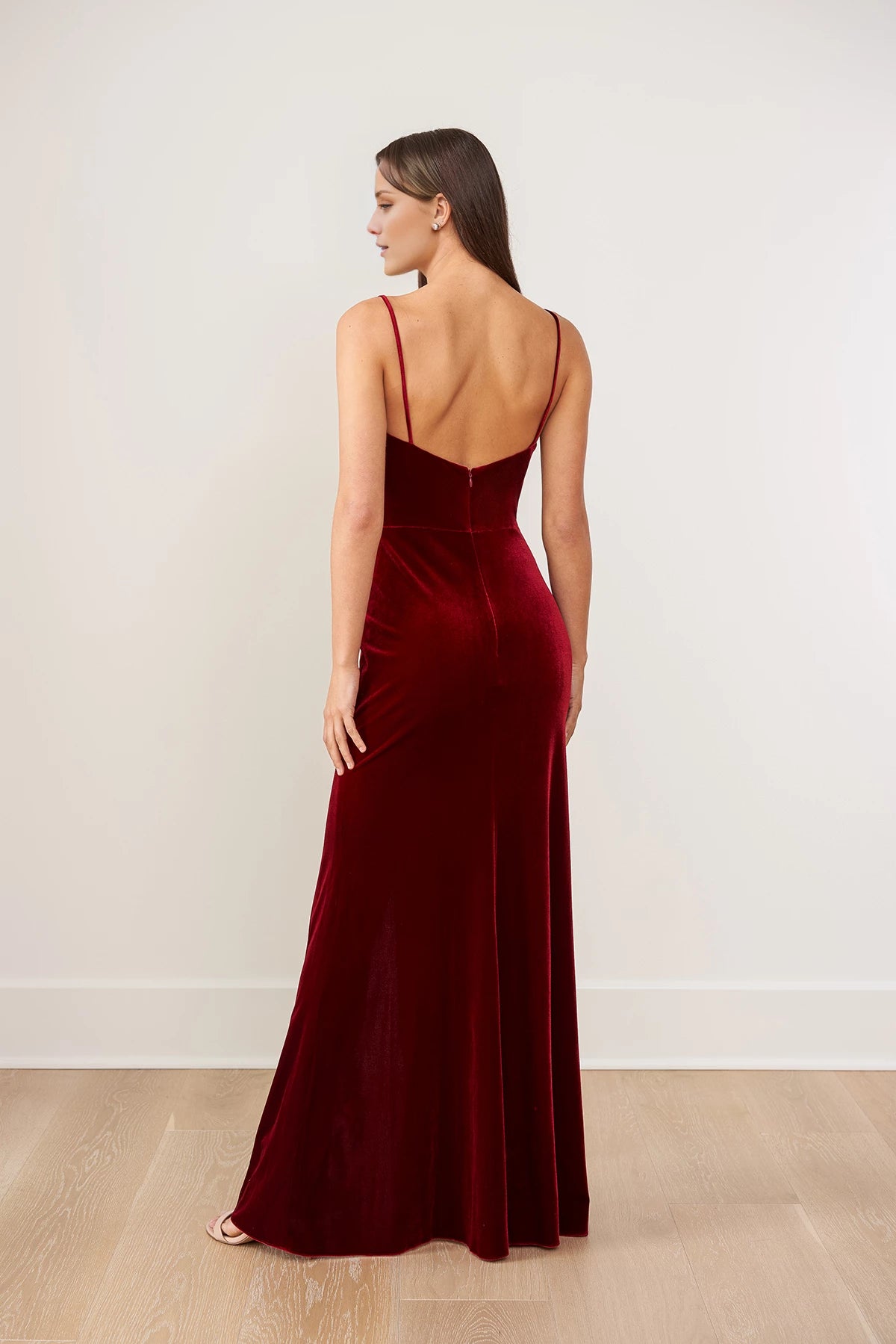 Glamorous Velvet Fit and Flare Gown with V-Notch Square Neckline and Spaghetti Straps Bridesmaid Dresses - US 2 / UK 6 / EU 32