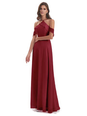 Halter Off The Shoulder Chiffon Long Bridesmaid Dresses