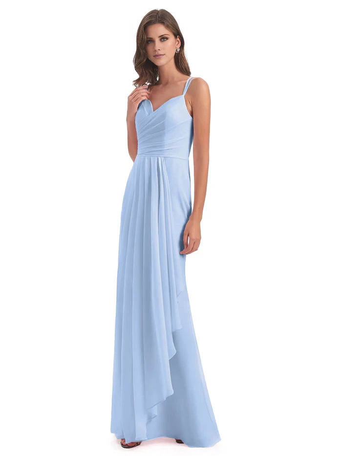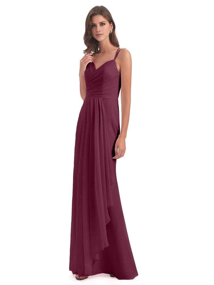 These chiffon bridesmaid dresses feature delicate spaghetti straps and a flattering hourglass silhouette, designed to enhance elegance and comfort for special occasions.