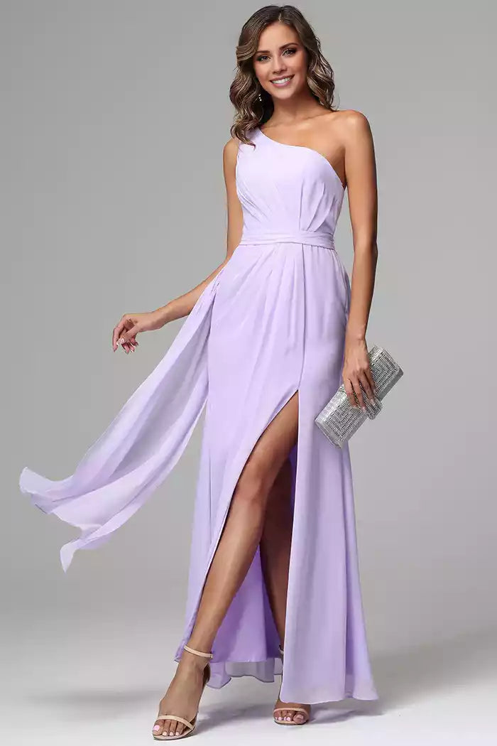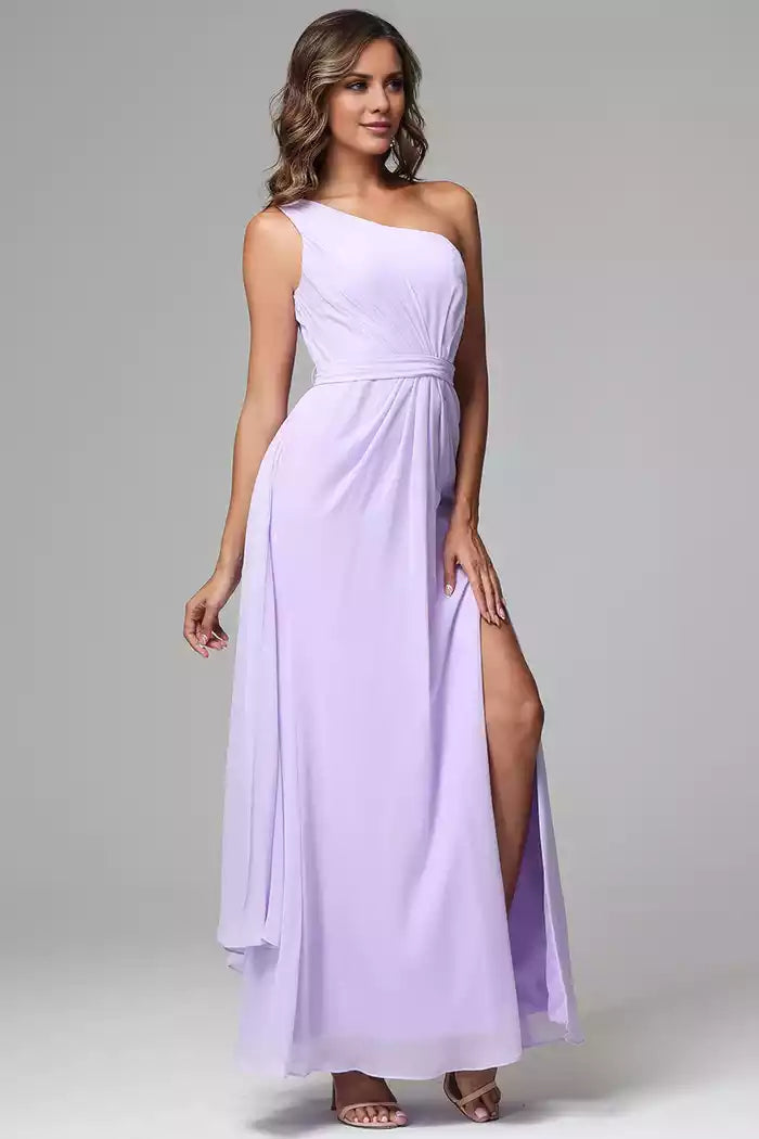Lace-Up Back One Shoulder Chiffon Split Fork Bridesmaid Dresses