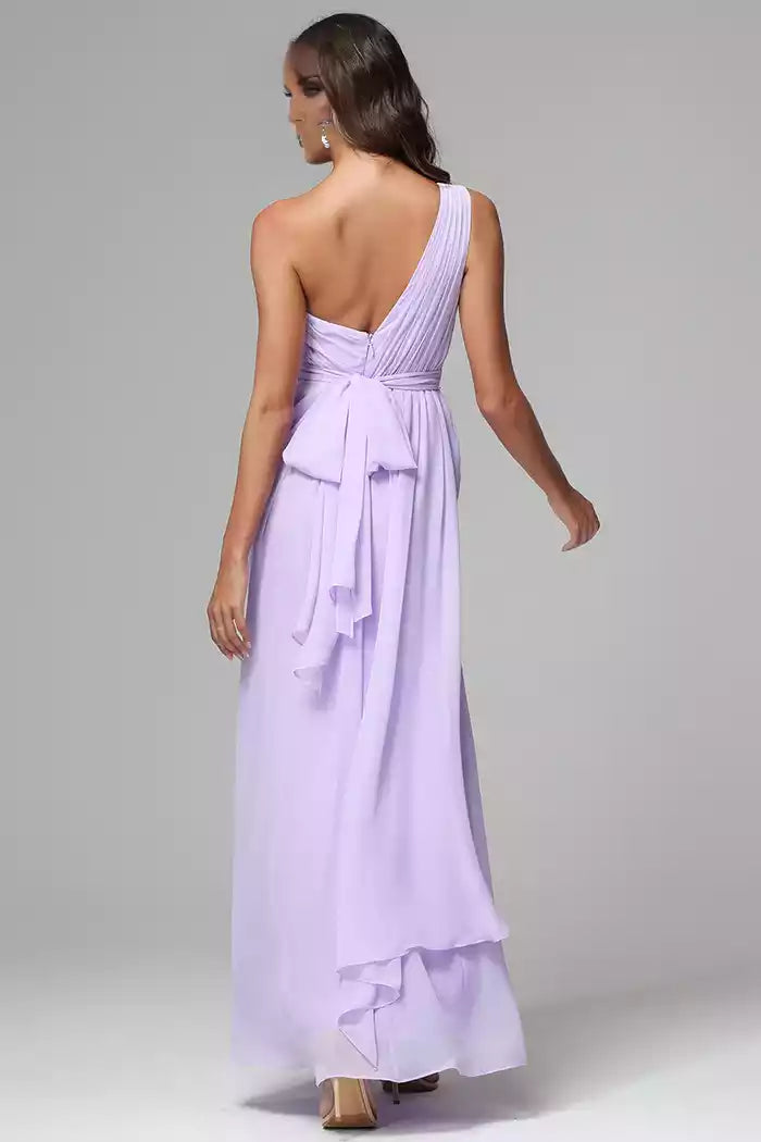 Lace-Up Back One Shoulder Chiffon Split Fork Bridesmaid Dresses - US 2 / UK 6 / EU 32