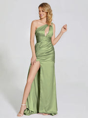 One-Shoulder Soft Satin Bridesmaid Dress With Cutout
