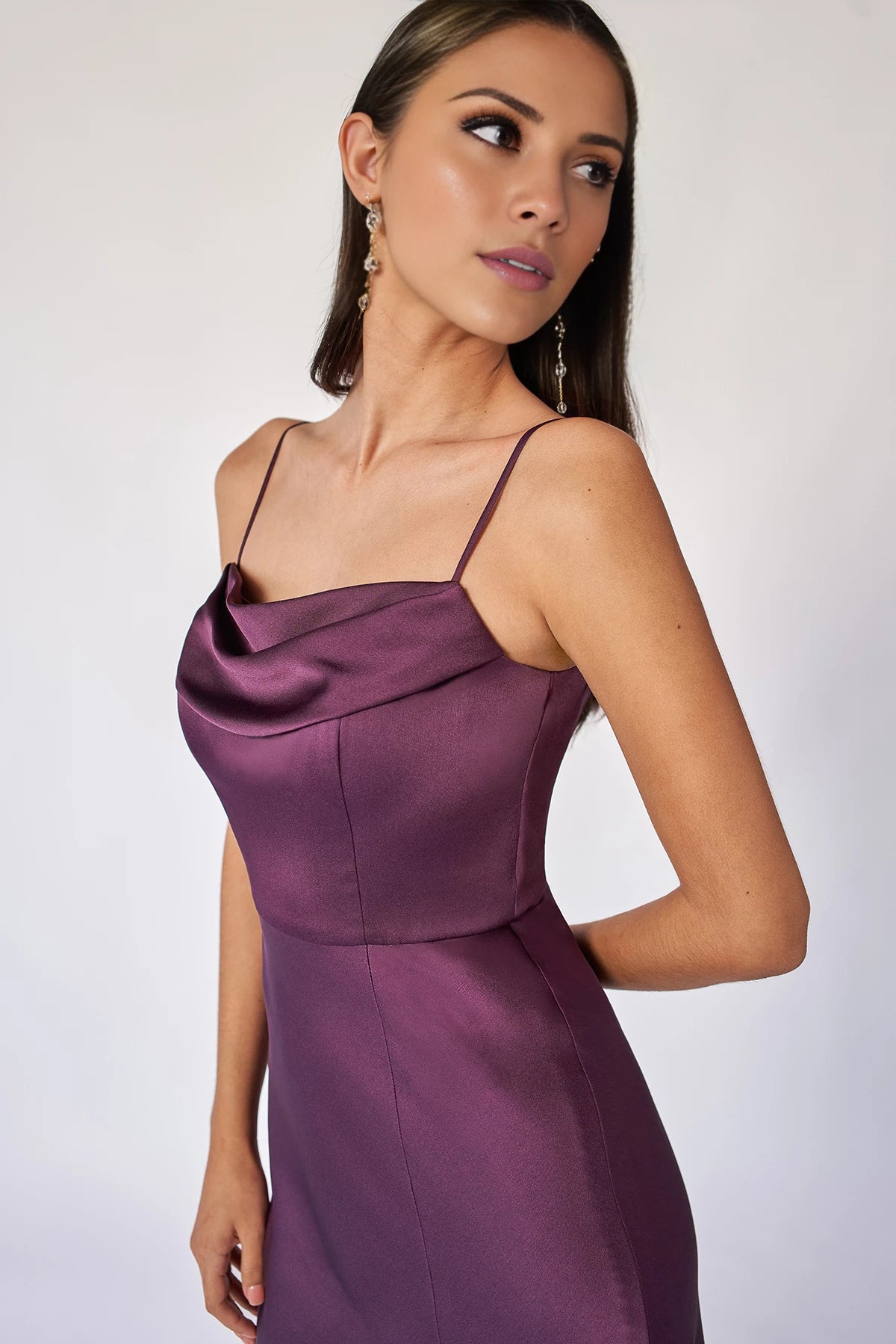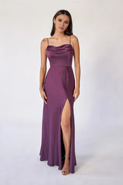 Simple A-Line Spaghetti Straps Sleeveless Back Zip Floor-Length Side Slit Bridesmaid Dress
