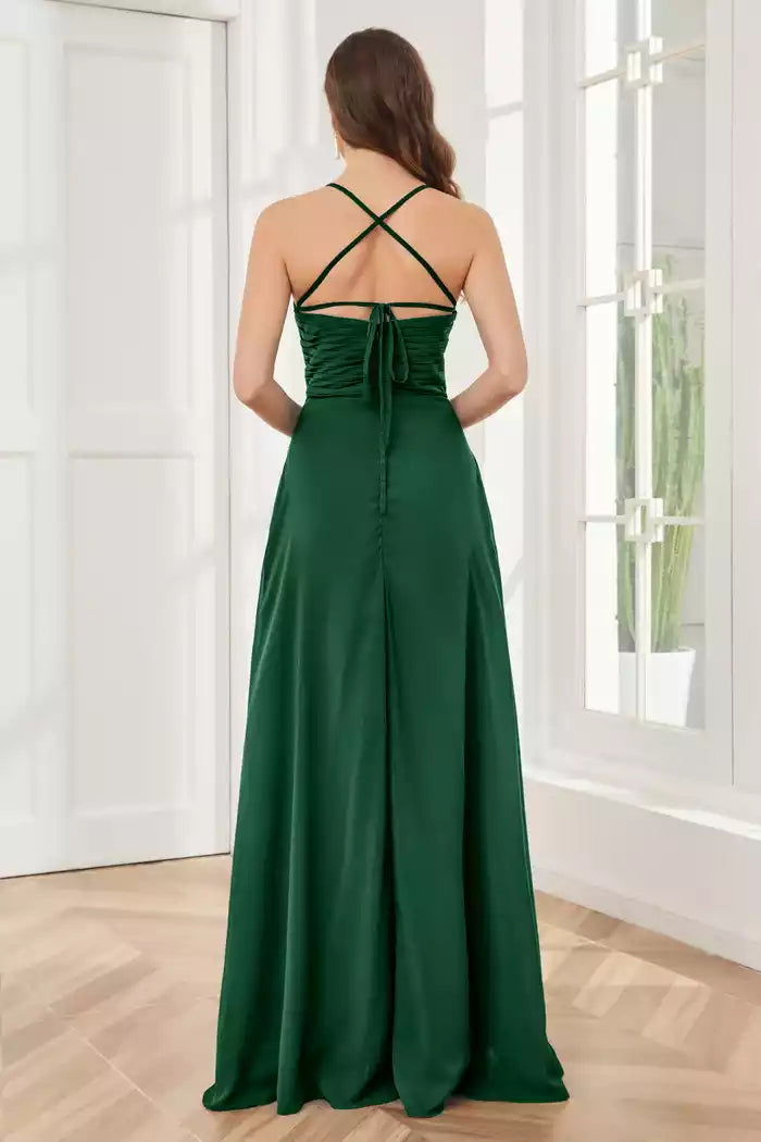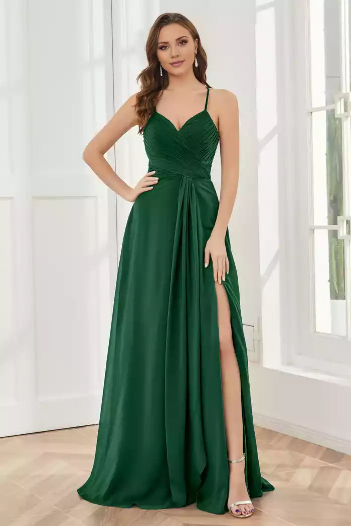 Spaghetti Straps Split Chiffon Bridesmaid Dresses Bridesmaid Dresses - Dark Green / US 2 / UK 6 / EU 32