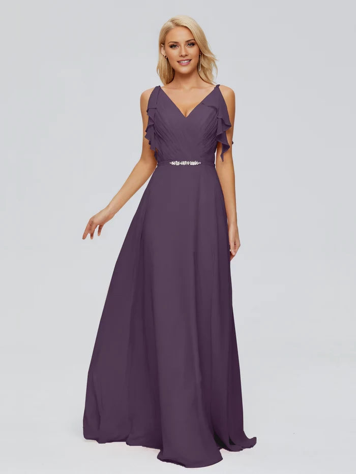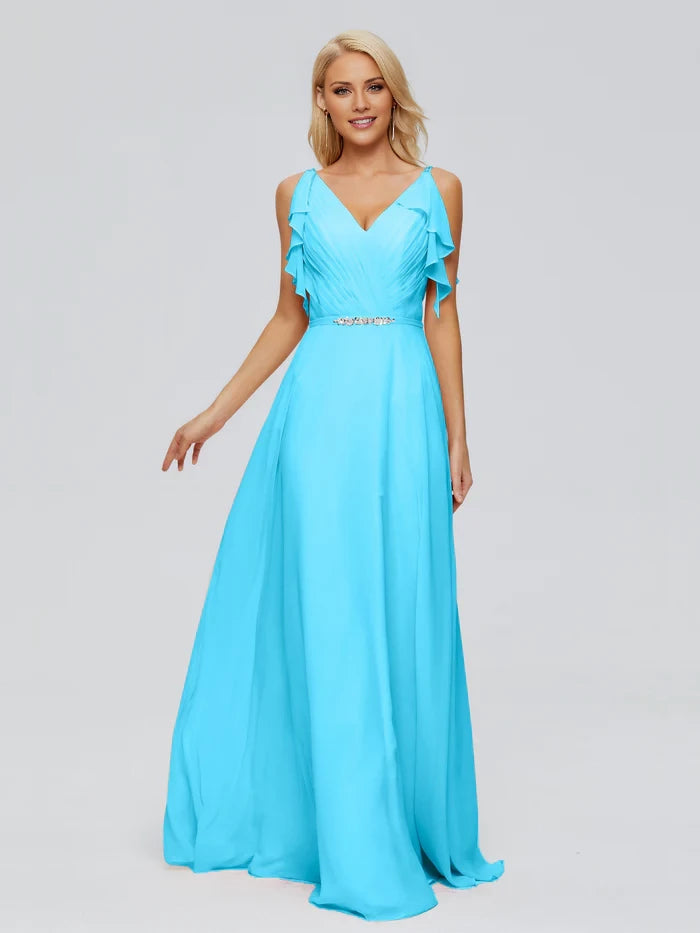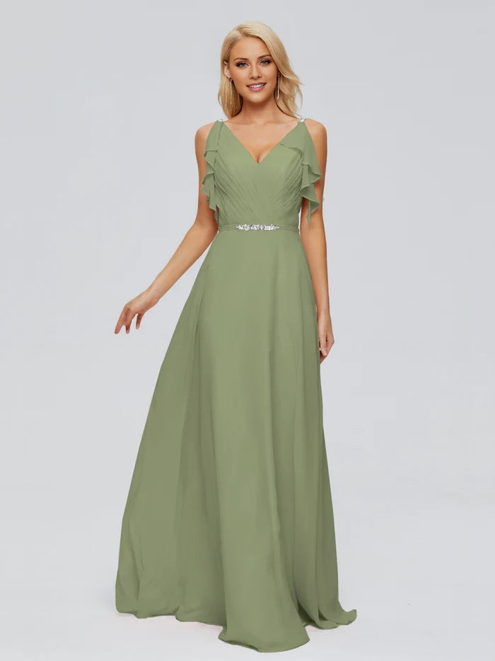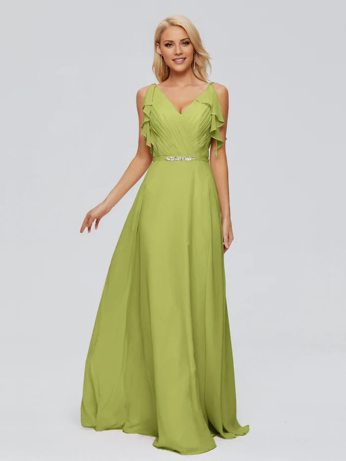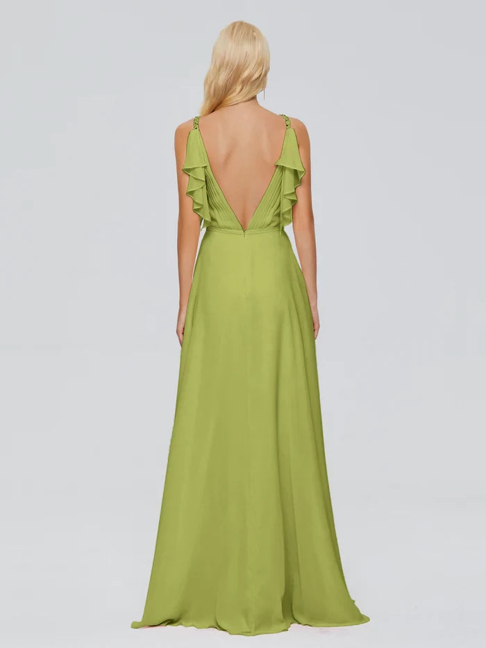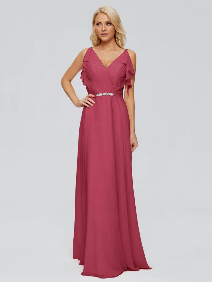 V-back SleevelessRuched Chiffon Bridesmaid Dresses