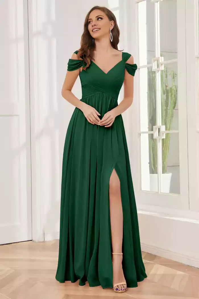 V-Neck Backless Off-the-Shoulder Side Slit Empire Bridesmaid Dresses
