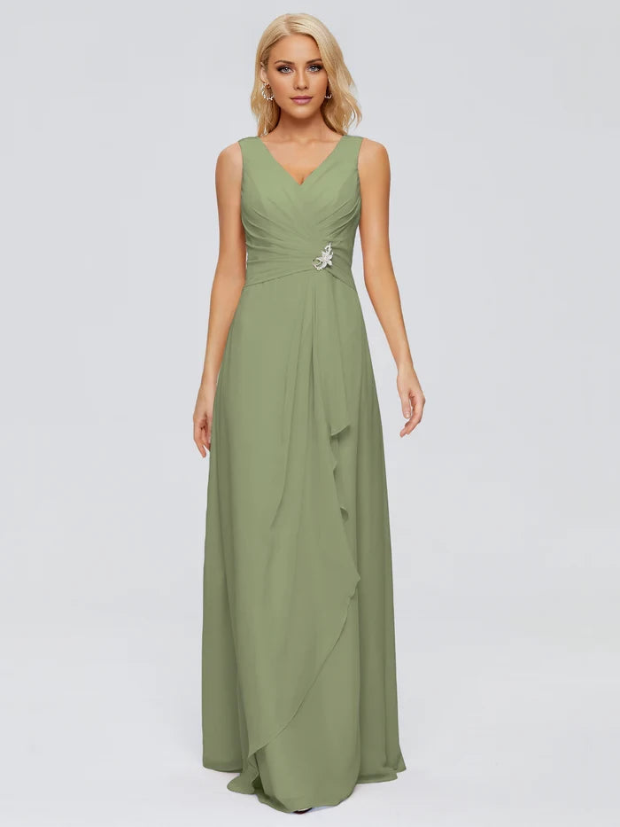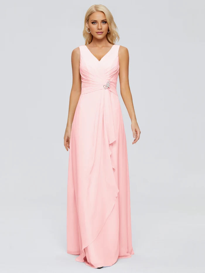 V Neck Sleeveless Chiffon Twist-Front Bridesmaid Dresses