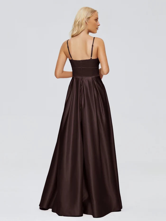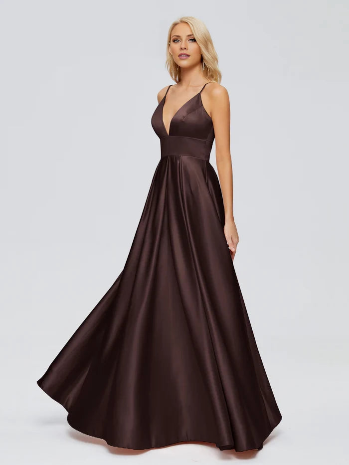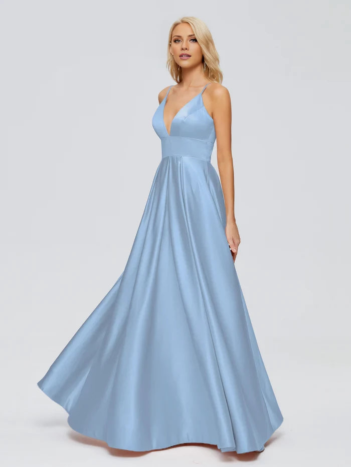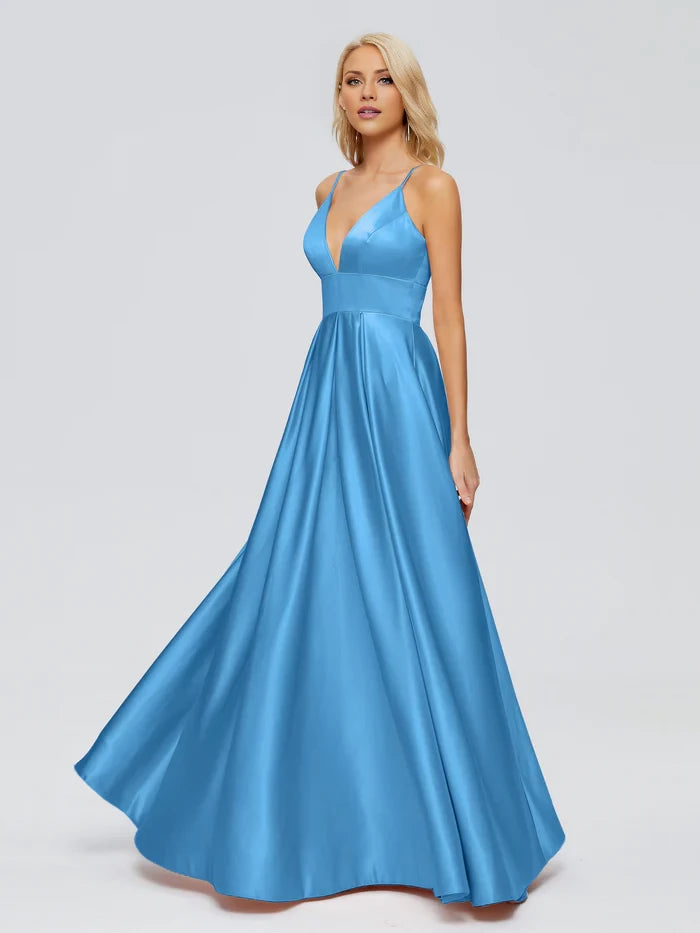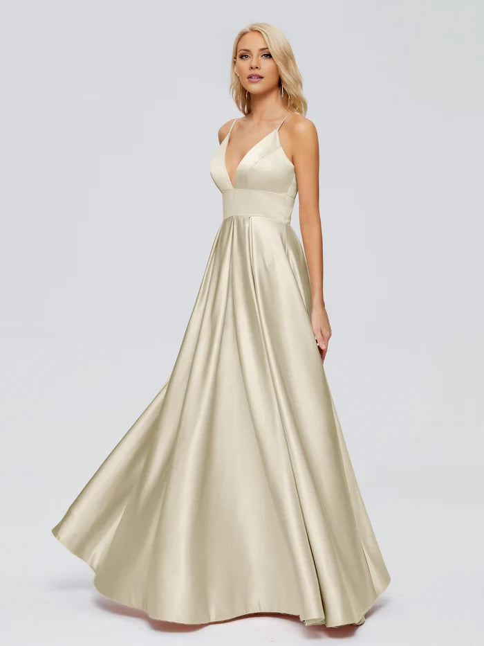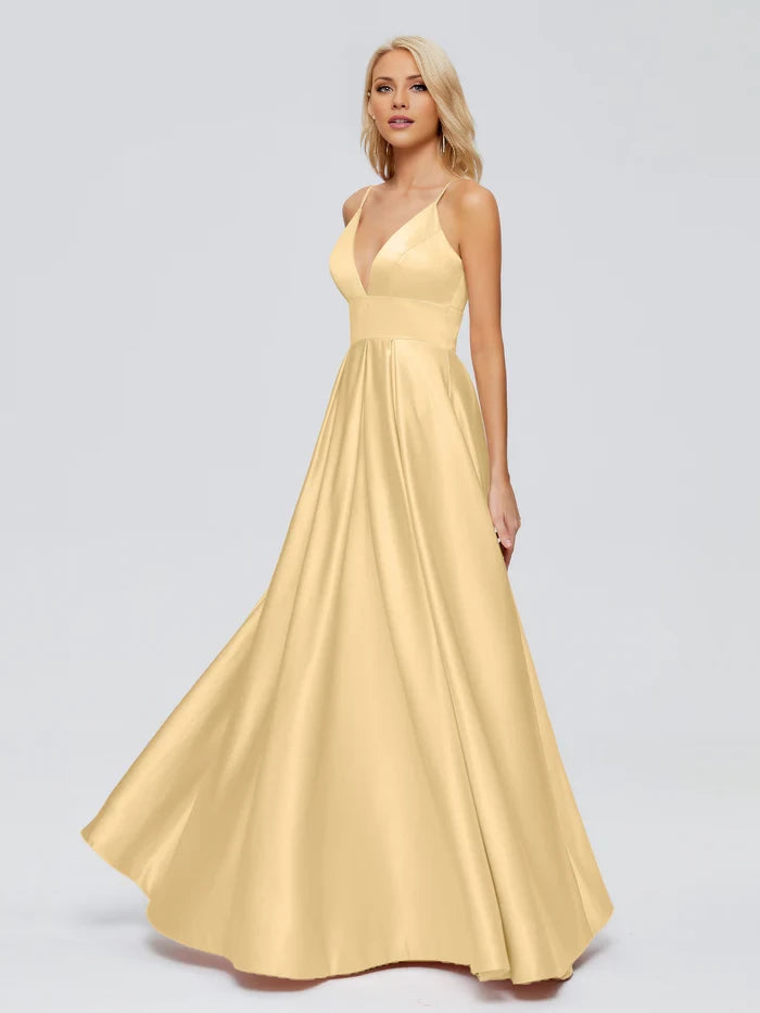 V-Neck Spaghetti Straps Satin Bridesmaid Dresses