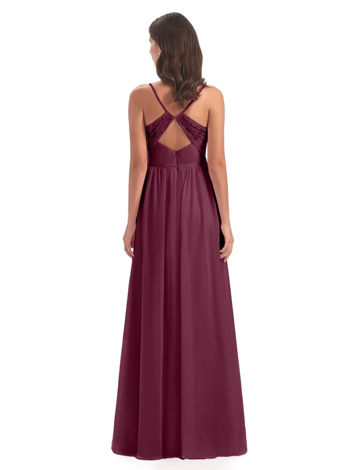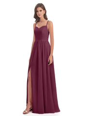 V Neck Spaghetti Straps Split Chiffon Bridesmaid Dresses - Mulberry / US 2 / UK 6 / EU 32