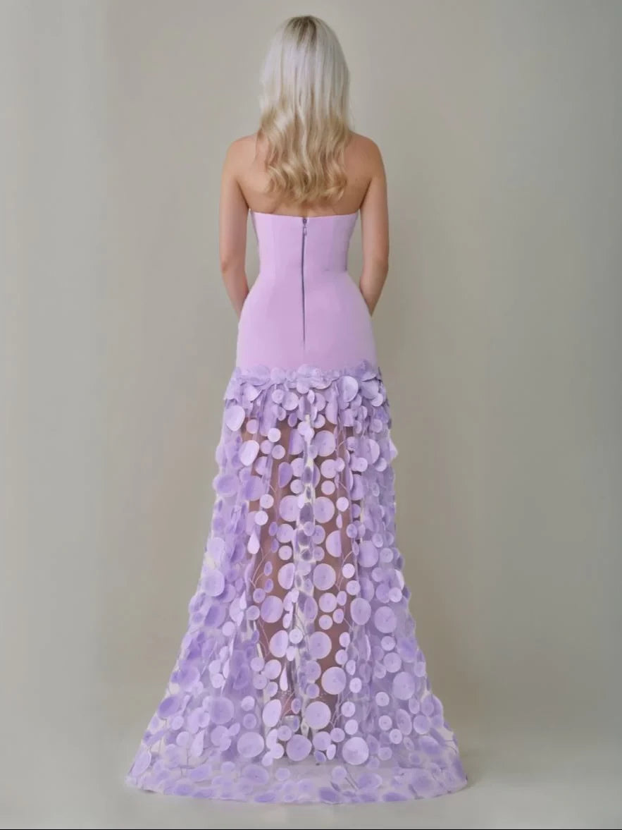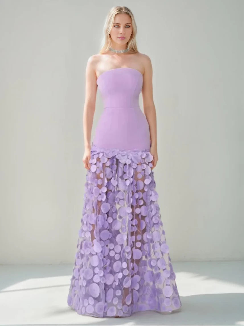 Elevate your evening look with this chic mermaid evening gown. It features a strapless neckline and sleeveless design, showcasing your shoulders elegantly. The zipper back ensures a secure fit, while the floor - length skirt, adorned with delicate circular appliqués, creates a unique and sophisticated silhouette. Perfect for galas, weddings, or any special evening occasion where you want to stand out with style.
