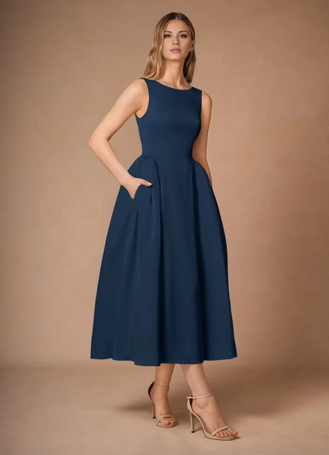 Classic A-Line Scoop Neck Sleeveless Back Zip Ankle-Length evening dress