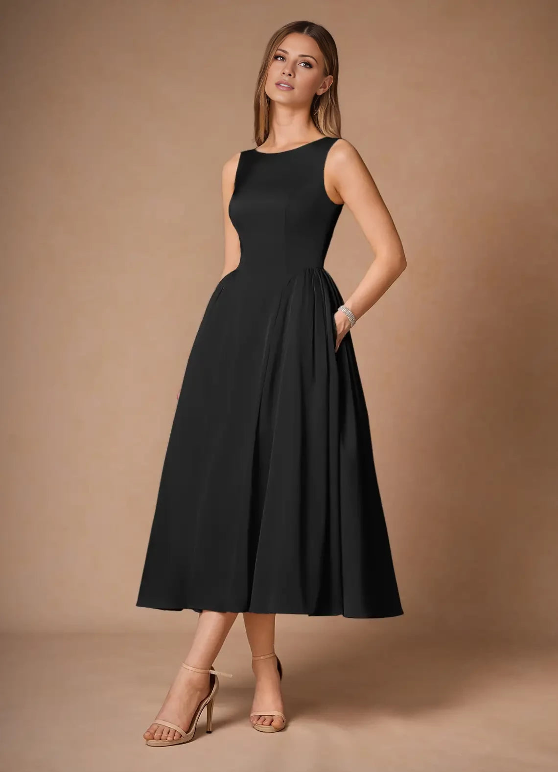 Classic A-Line Scoop Neck Sleeveless Back Zip Ankle-Length evening dress - black / US 2 / UK 6 / EU 32