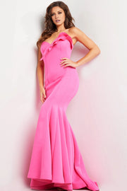This elegant evening dress features a deep pink hue and a strapless design with a sweetheart neckline, perfect for sophisticated occasions.