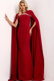 Elegant Cape Gown with Crystal Embellishments Evening Dresses