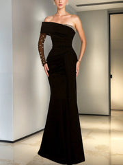 Elegant Mermaid Off - Shoulder Single - Sleeve Beaded Back Floor - Length Evening Gown