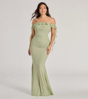 Formal Mesh Off-The-Shoulder Wrap The Buttocks Long Dress Evening Dress - SAGE / US 2 / UK 6 / EU 32