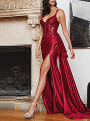 Make a dazzling statement with this glamorous mermaid evening gown. It features a plunging V - neckline and sleeveless design, exuding elegance and allure. The open - back detail adds a touch of drama, while the floor - length silhouette, with a high side slit and intricate embellishments on the bodice, hugs your curves beautifully. Perfect for galas, weddings, or any special evening occasion where you want to shine.