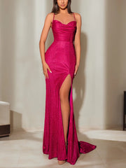 Make a stunning statement with this glamorous mermaid evening gown. It features a sweetheart neckline and sleeveless design, highlighting your décolletage elegantly. The lace - up back adds a touch of allure and allows for a customized fit, while the floor - length silhouette, with a high side slit and shimmering fabric, hugs your curves beautifully. Perfect for galas, weddings, or any special evening occasion where you want to shine.