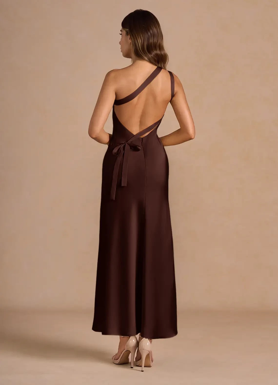 One-Shoulder Lace-Up Back Maxi Dress Evening Dresses - Mocha Coco / US 2 / UK 6 / EU 32