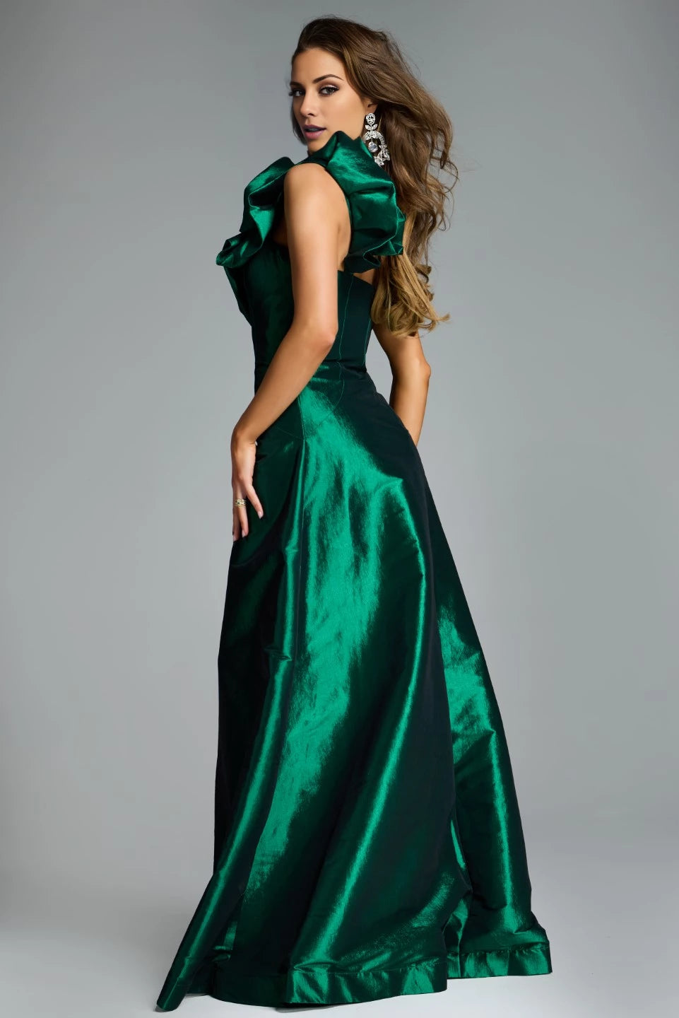 One-Shoulder Satin A-Line Gown with Ruffle Detail Evening Dresses