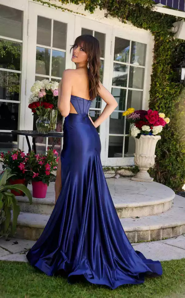 Plunge V Tantalizing Neckline Floor length Dress Evening Dress - NAVY / US 2 / UK 6 / EU 32