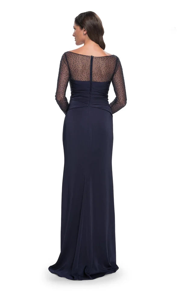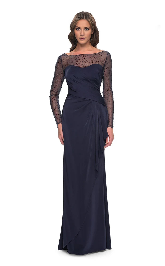 Ruched Rhinestone Illusion Bateau Neckline Sheath long Dress Evening Dresses - US 2 / UK 6 / EU 32