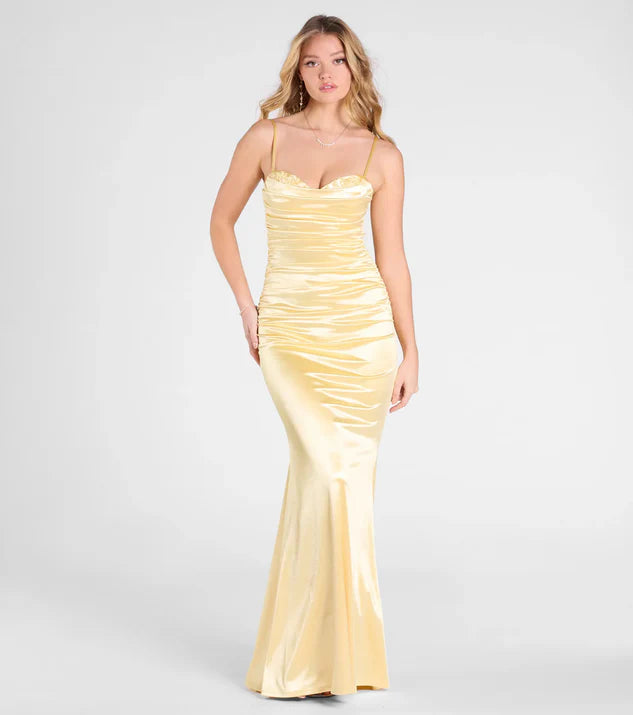 Satin Sweetheart Applique Mermaid Dress Evening Dress - YELLOW / US 2 / UK 6 / EU 32