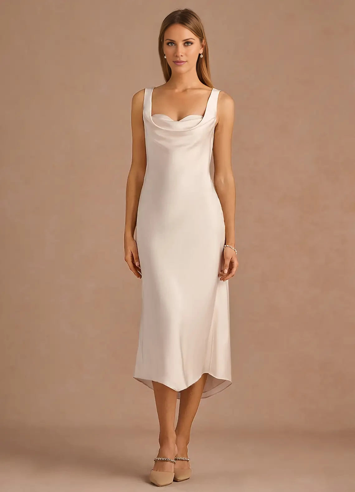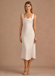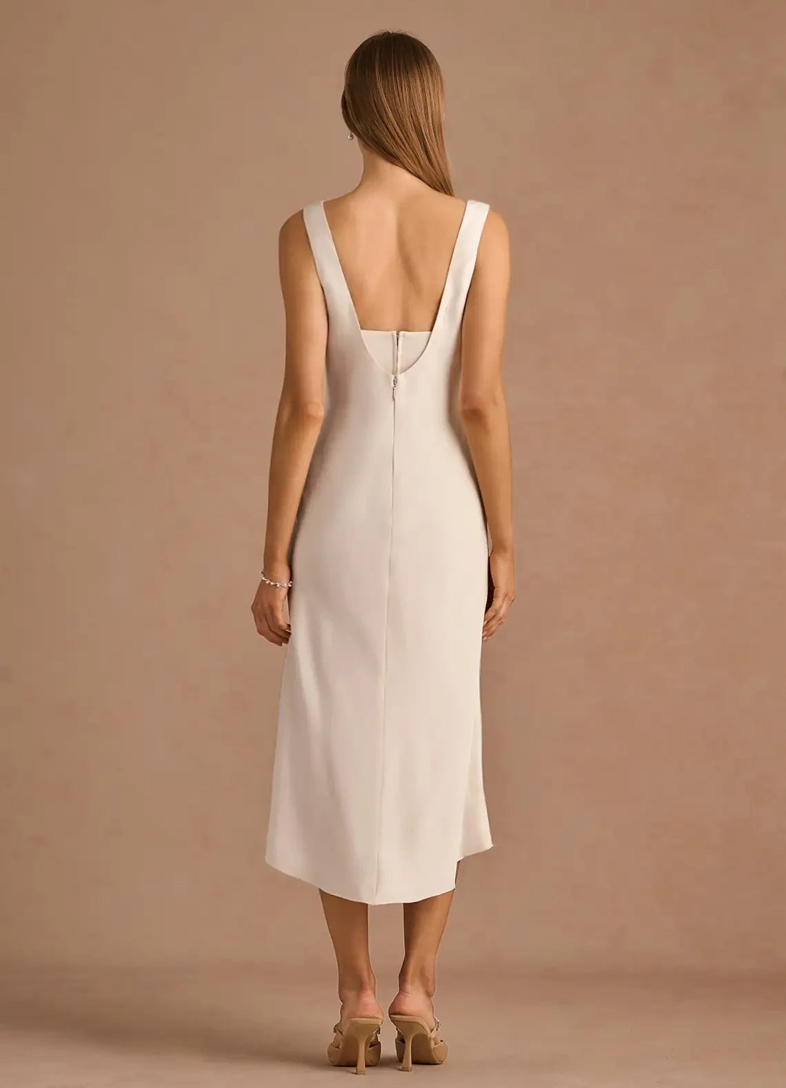 Simple Scoop Neck Sleeveless Satin Back Zip Ankle-Length evening dress