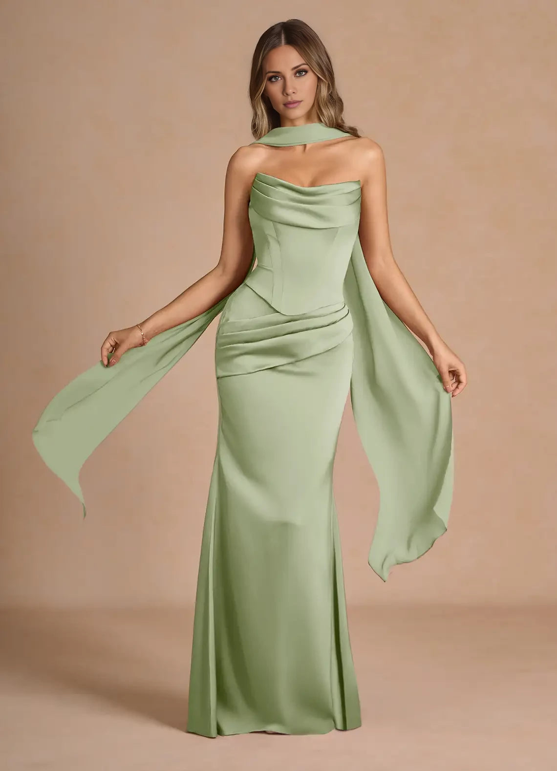 Elegant Sorrel Two-Piece Evening Dress Featuring a Corset Design