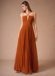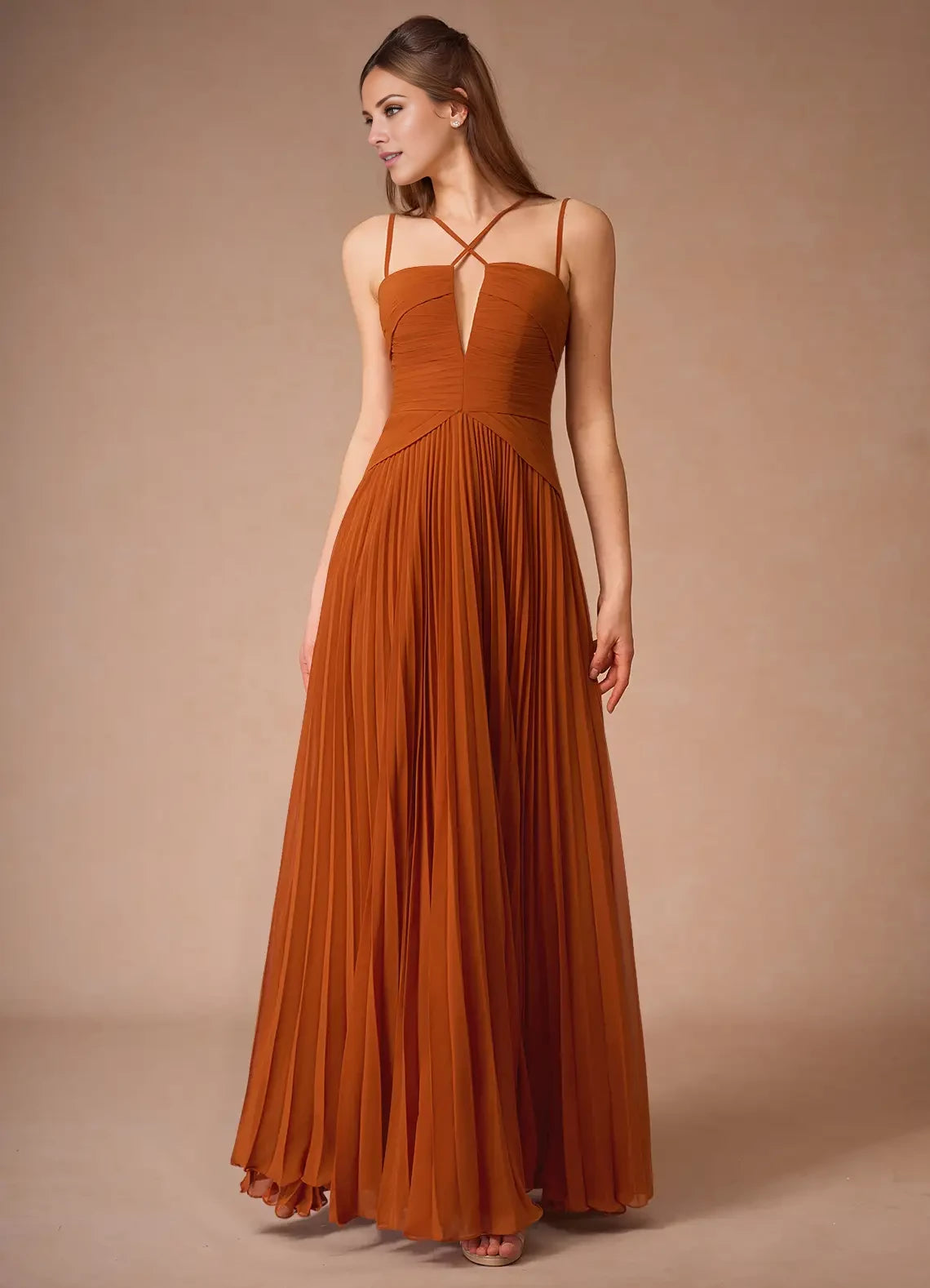 Thin shoulder strap Long Midi Dress Evening Dresses - Spice / US 2 / UK 6 / EU 32