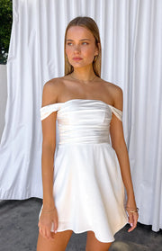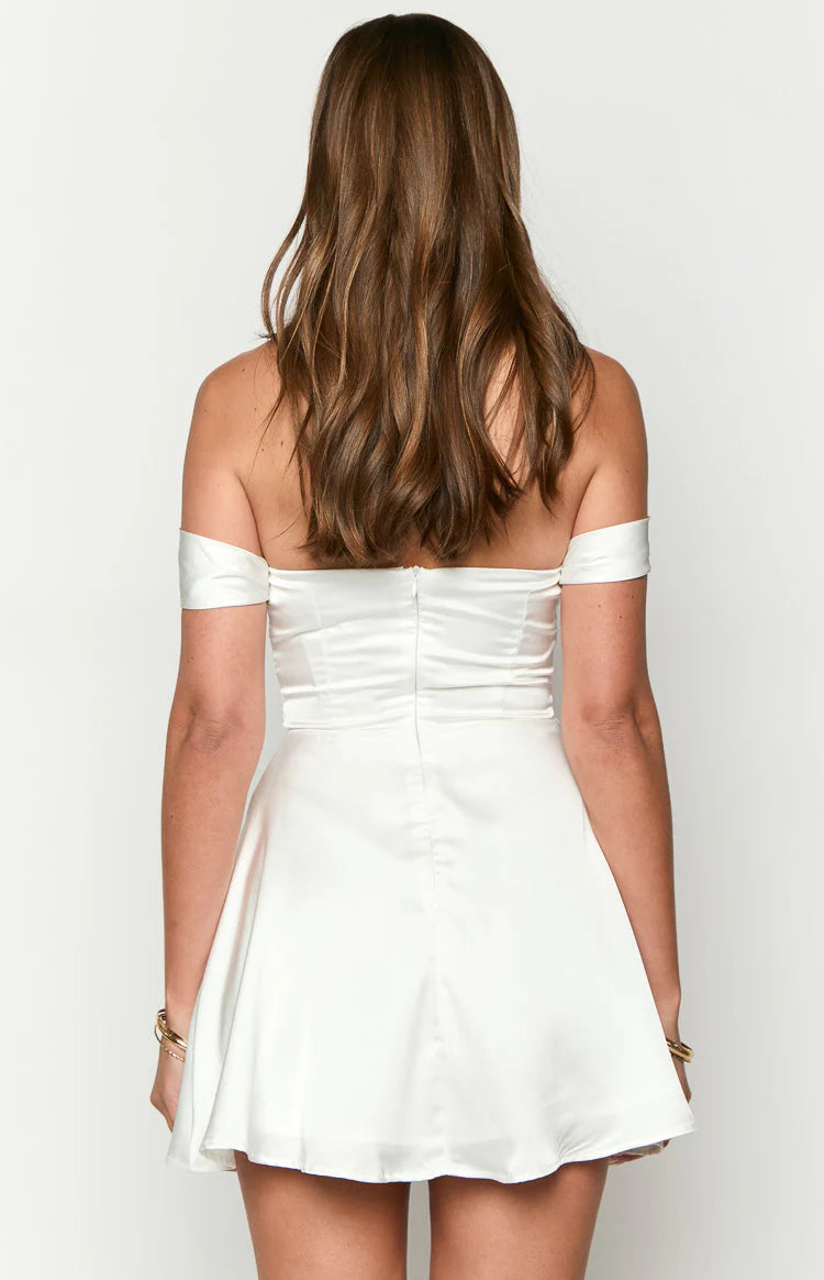 This off-the-shoulder mini dress features a flattering A-line silhouette, perfect for homecoming events. Its elegant design combines style and comfort, making it an ideal choice for a memorable evening.