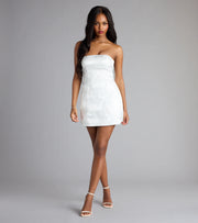 This mini dress features a stylish bow lace-up design, perfect for homecoming events. Its elegant silhouette combines a flattering fit with intricate detailing, making it an excellent choice for a memorable occasion.