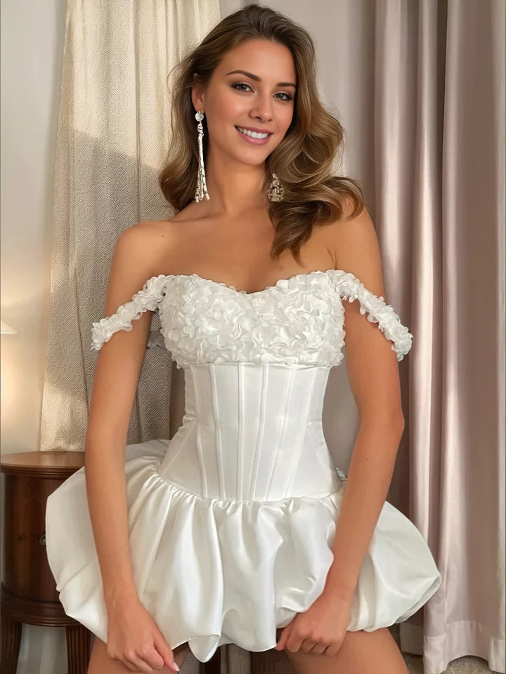 Elegant A - Line Off - Shoulder Ruffle Sleeve Zipper Back Mini Length Homecoming Dresses