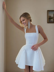 Elegant A - Line Square Neck Sleeveless Lace - Up Back Mini Length Homecoming Dresses