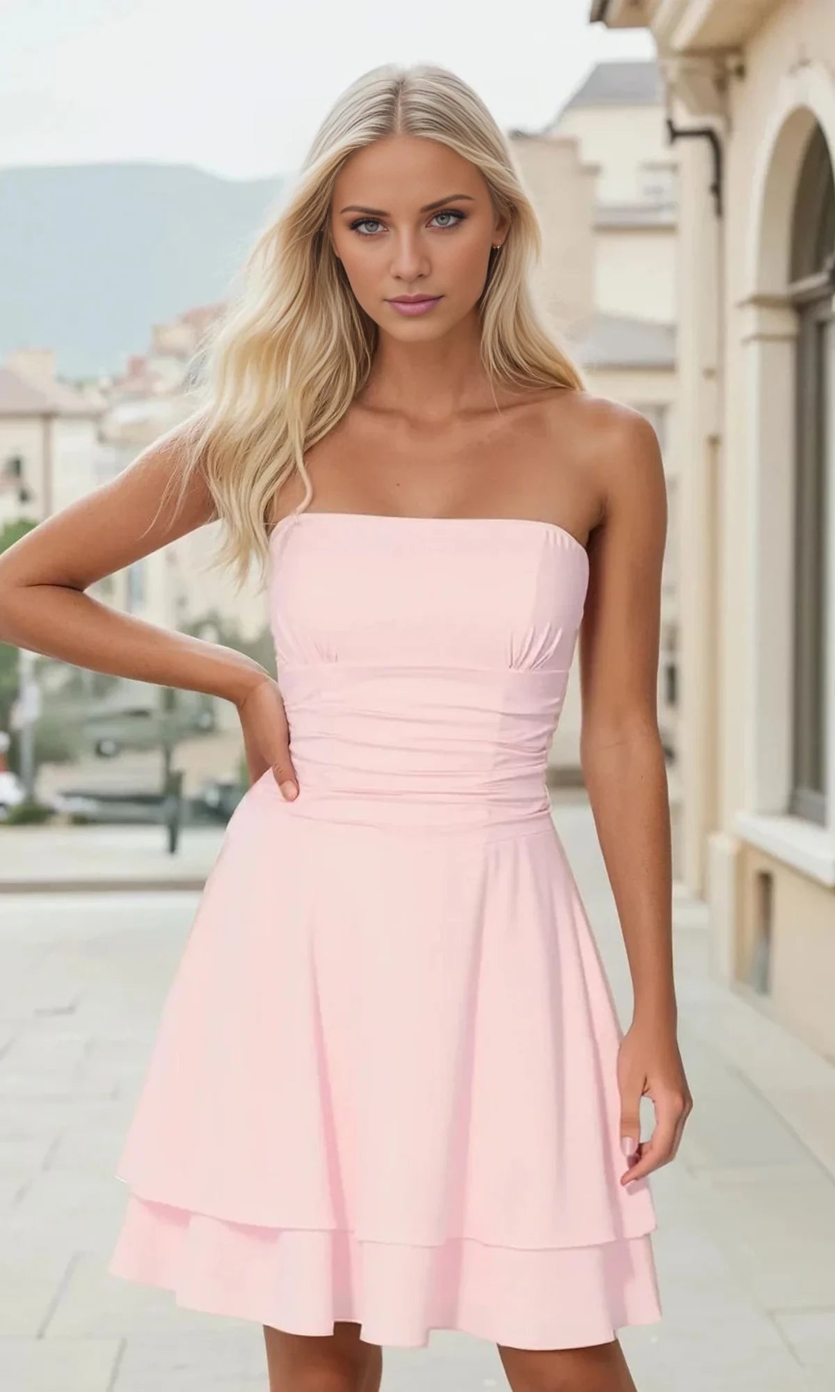 Elegant A-Line Strapless Sleeveless Backless Short-Mini Homecoming Dress