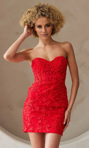 Embroidered Lace Strapless Short Hoco Dress Homecoming Dress - Red / US 2 / UK 6 / EU 32