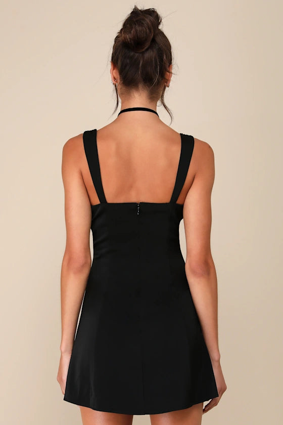 Flirtatiously Gorgeous Satin Lace Bustier Mini Dress Homecoming Dresses - Black / US 2 / UK 6 / EU 32