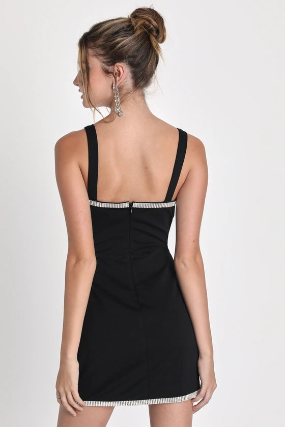 Glowing Allure Rhinestone Sleeveless Bodycon Mini Dress Homecoming Dresses - Black / US 2 / UK 6 / EU 32