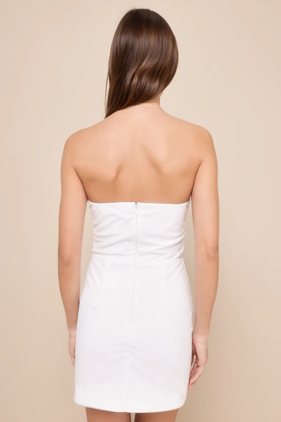 Idyllic Blooms Mesh Ruched 3D Floral Strapless Mini Dress Homecoming Dresses - US 2 / UK 6 / EU 32