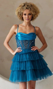 Luxury Spaghetti Straps Sleeveless Crisscross Back Ball Gown Short-Mini Homecoming Dress - Teal / US 2 / UK 6 / EU 32