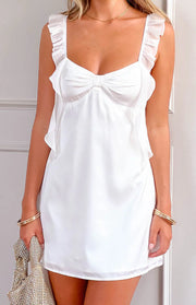 This elegant satin mini dress features an off-the-shoulder design, perfect for homecoming events. Its sleek silhouette and smooth fabric create a sophisticated and flattering look for special occasions.
