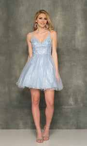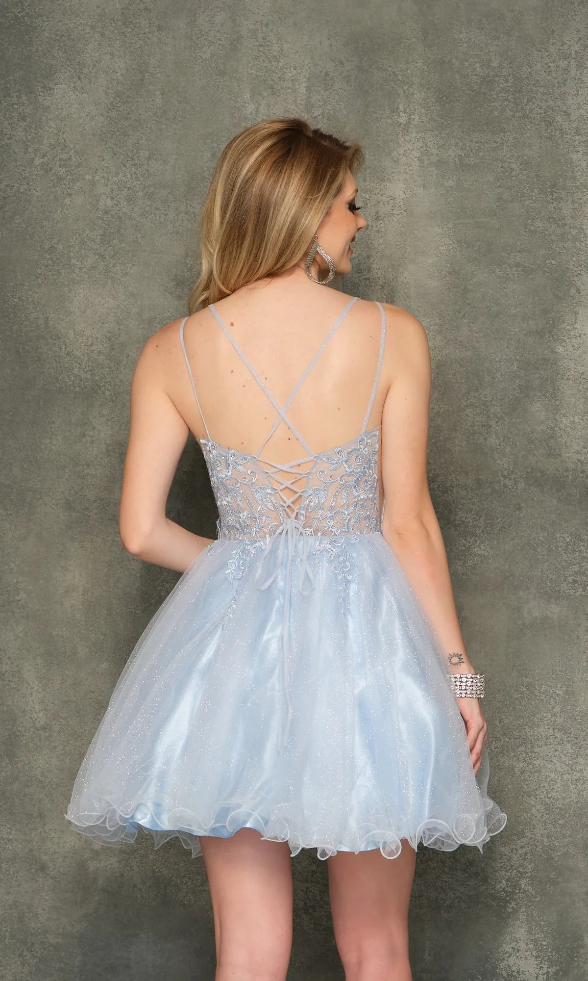Short Homecoming Dresses in Ice Blue Featuring a Sheer Bodice