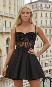 Exclusive Homecoming Dresses by PromGirl featuring a short, backless design with delicate spaghetti straps for an elegant and contemporary look.